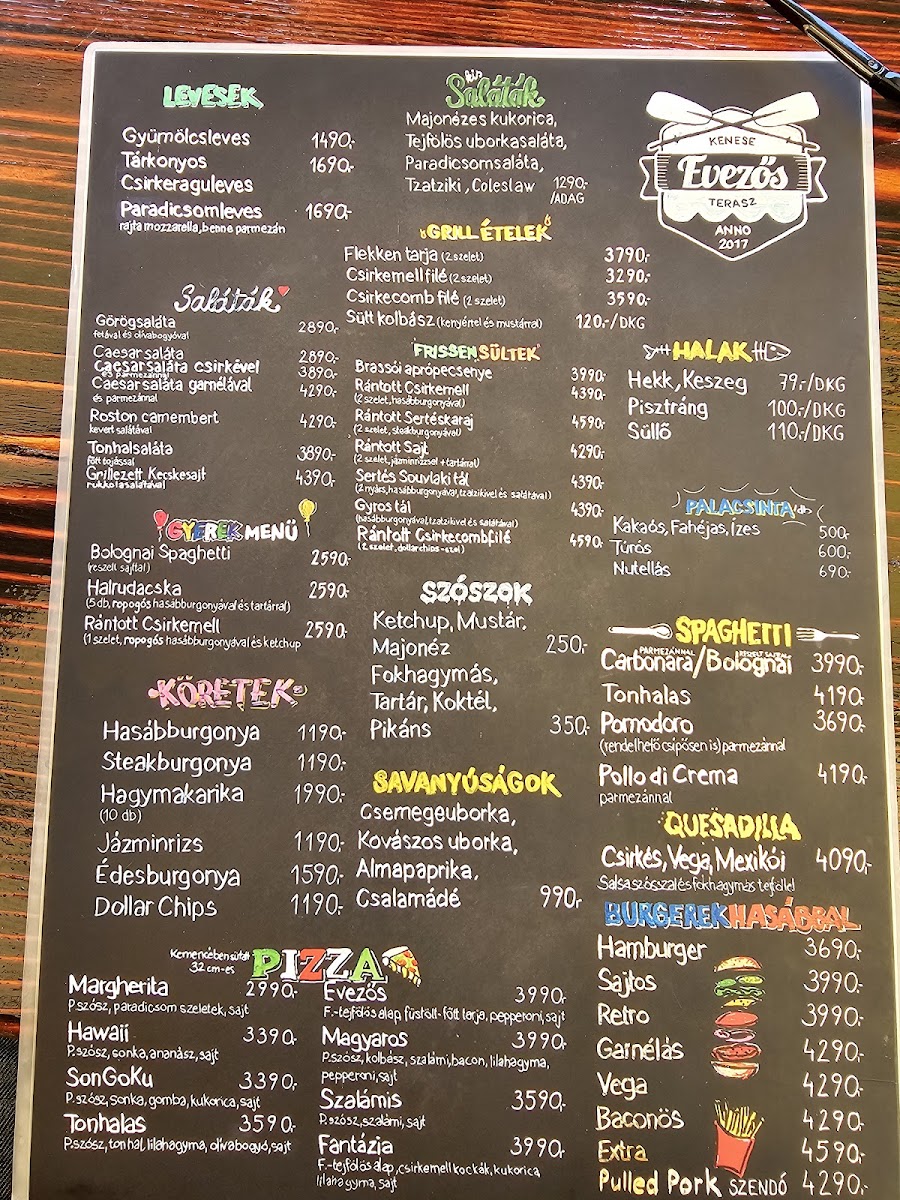 Kenese Evezős Terasz offers a delightful and varied menu that caters to different tastes while highlighting the flavors of the region. For a refreshing drink, the Limonádé is an excellent choice, perfect for enjoying the lakeside view. The restaurant also caters to vegetarians with the delicious Vega Burger, a hearty and flavorful option. Those looking for a lighter, more classic dish can try the Caesar Salad with Chicken, which is fresh and satisfying. If you're in the mood for something more filling, the Pork and Potato Cubes provide a hearty, savory experience, while the Hamburger Hasábbal is a solid option for anyone craving a well-prepared burger with crispy fries on the side. For those who appreciate a taste of local Hungarian cuisine, the Hekk Édesburgonya És Kovászos Uborka offers a unique twist, combining crispy fish with the sweetness of sweet potatoes and the tang of pickled cucumber. Overall, the menu at Kenese Evezős Terasz provides a wonderful mix of traditional and modern dishes, making it an ideal spot for anyone visiting Balatonkenese.